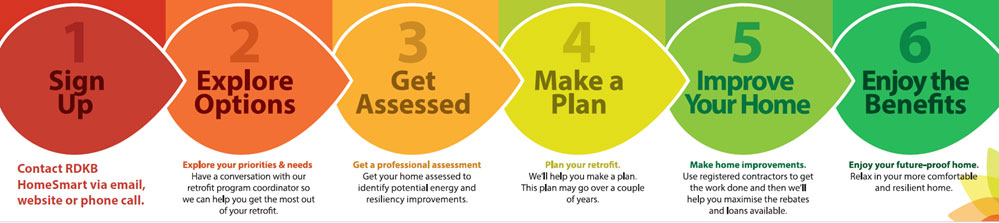 RDKB HomeSmart assists residents who are considering home improvements by simplifying the retrofit journey including navigation of rebates and loans including income qualified programs, helping them plan and prioritized potential upgrades and explores incorporating low carbon resiliency into their home improvement.