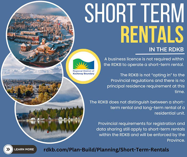 The following is meant to provide clear information as to how short-term rentals are being handled within the RDKB.